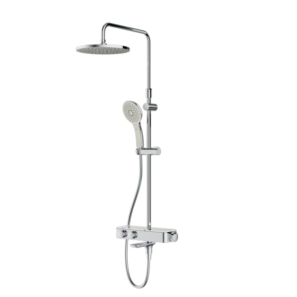 Продукт оснащен термостатическим смесителем для поддержания неизменной температуры воды. Верхняя часть смесителя выполнена из глянцевого стекла и является интегрированной полочкой для нужных мелочей при приёме душа.