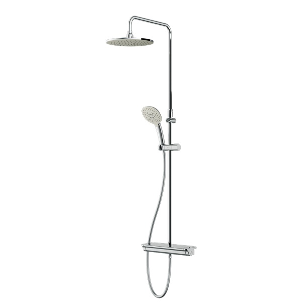 Смеситель для душа с термостатом: настенная установка  картридж с термоэлементом  стопор безопасности на 38°C  запирающий и переключающий вентиль  выход для душа 1/2“  встроенные обратные клапаны  встроенные фильтры  эксцентрики  подключение G 1/2“.