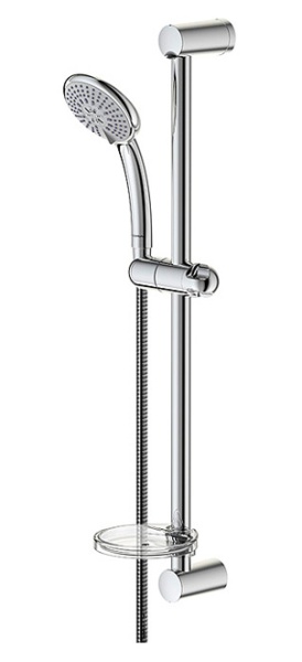 VIDIMA FRESH M Душевой гарнитур (3-функциональная лейка 100 мм, 8 л/мин., штанга 600 мм (+/-5 мм), Ø 24 мм, с силиконовым покрытием Ultraflex 1750 мм, пластиковый держатель лейки, прозрачная мыльница в комплекте)