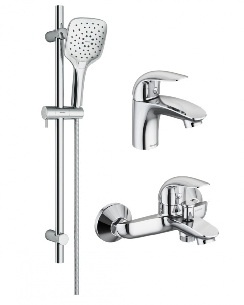 - 3 в 1: комплект из двух смесителей и душевого комплекта гармонично дополняют друг друга как функционально  так и эстетически.