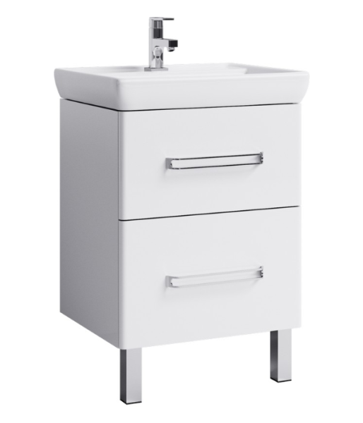 Напольная тумба в белом глянцевом цвете с двумя ящиками с умывальником