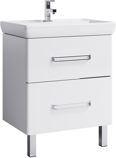 Напольная тумба в белом глянцевом цвете с двумя ящиками с умывальником