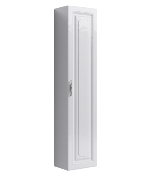Подвесной универсальный пенал левый/правый пенал с одной дверью на мебельных петлях с доводчиками в белом глянцевом цвете.
