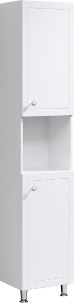 Напольный универсальный (левый/правый) пенал с двумя дверцами, а также открытой нишей для быстрого доступа к предметами.