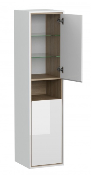 LOUNA – это коллекция, отвечающая последним тенденциям рынка: сочетание чистоты белого цвета и натурального дерева. Основной отличительной особенностью коллекции является её дизайн – сочетание белого с деревом, фрезерованная ручка, выдвижной ящик и удобная открытая полка для хранения. Пенал оборудован стеклянными полками и открытой нишей. Зеркала в коробе ЛДСП оборудованы сенсорной подсветкой.