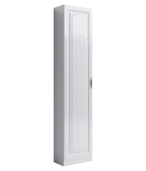 Напольный универсальный левый/правый пенал с одной дверью на мебельных петлях с доводчиками в белом глянцевом цвете.