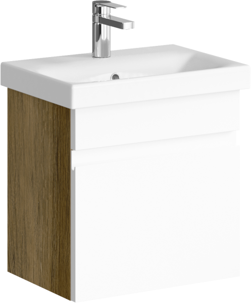 Подвесная тумба с одним ящиком, цвет дуб балтийский с умывальником