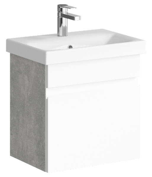 Подвесная тумба с одним ящиком, цвет бетон светлый с умывальником