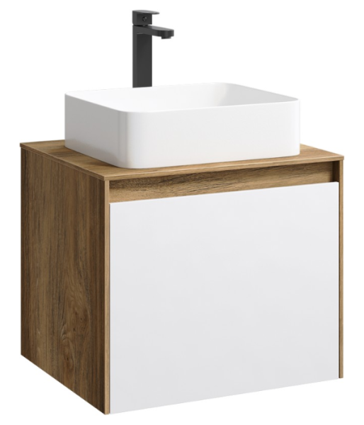 Подвесная тумба 60 см с двумя ящиками: основной и внутренний, скрытый за фасадом. Цвет дуб балтийский/белый; с умывальником