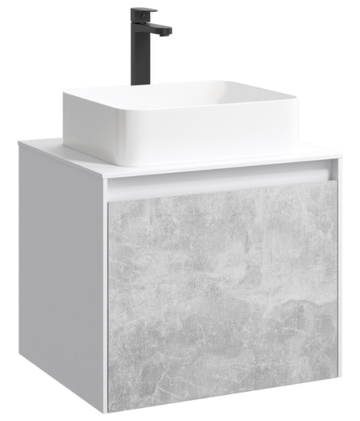 Подвесная тумба 60 см с двумя ящиками: основной и внутренний, скрытый за фасадом. Цвет белый/бетон светлый; с умывальником