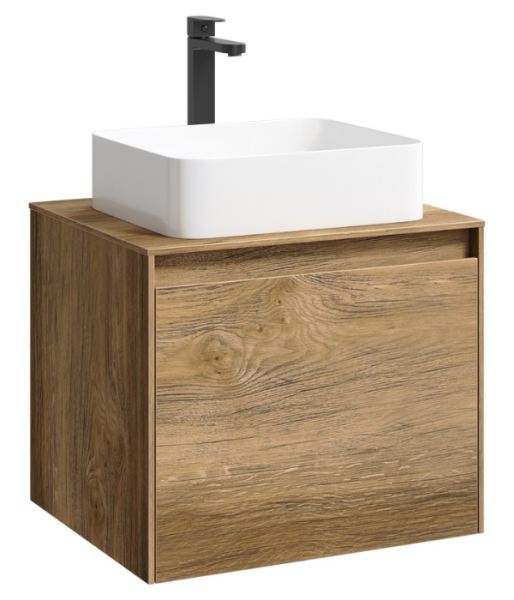 Подвесная тумба 60 см с двумя ящиками: основной и внутренний, скрытый за фасадом. Цвет дуб балтийский; с умывальником
