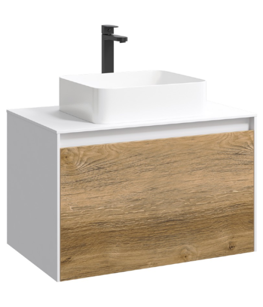 Подвесная тумба 80 см с двумя ящиками: основной и внутренний, скрытый за фасадом. Цвет белый/дуб балтийский; с умывальником