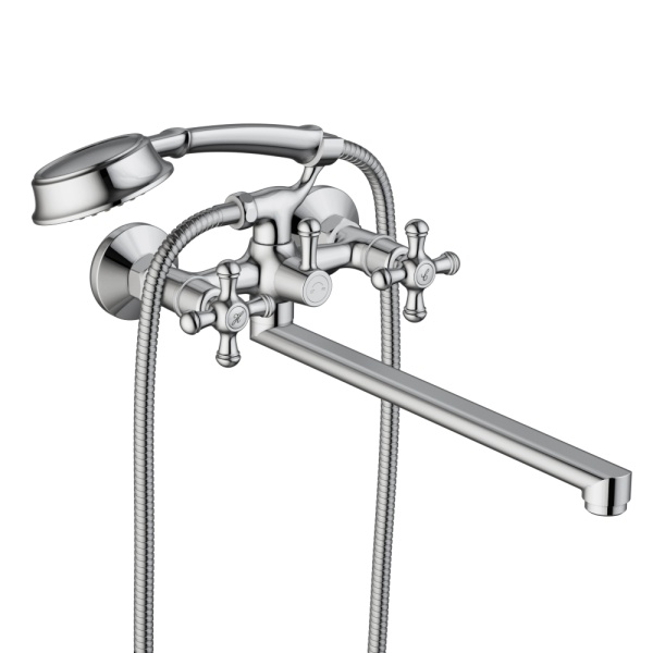 Прекрасный вариант для ценителей классического дизайна. Традиционные вентильные ручки стильно смотрятся и имеют керамические кран-буксы ручки с поворотом на 180°. Длинный поворотный излив можно использовать для многих бытовых нужд. Керамический картридж Light Flow обеспечивает плавное управление ручкой смесителя и оптимальную регулировку температуры воды и мощности потока. В комплект входит душевой гарнитур.
