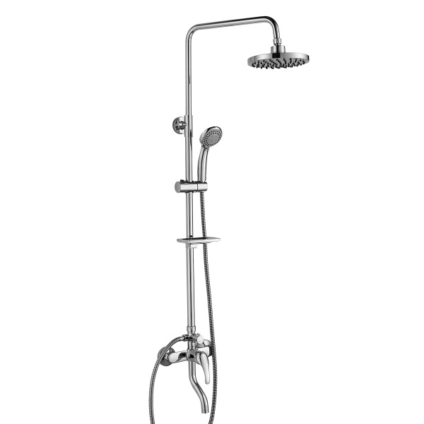 <span><p>В комплекте:</p><ul><li>Пластиковый аэратор с функцией легкой очистки</li><li>Керамический картридж 35 мм</li><li>Трехпозиционный картриджный переключатель (угол поворота - 360⁰)</li><li>Верхняя поворотная душевая лейка «Тропический дождь» Ø195 мм с функцией легкой очистки</li><li>Аксессуары в комплекте (шланг 1,5 м; 3-функциональная лейка Ø87 мм с функцией легкой очистки; регулируемое по высоте крепление для лейки; регулируемая по высоте полочка для душевых принадлежностей)</li><li>Присоединительная группа (эксцентрики с отражателями) для настенного крепления</li><li>Металлическая рукоятка</li></ul></span>