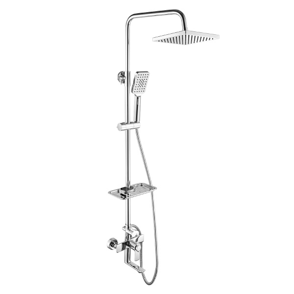 Смеситель термостатический Rossinka RS50-46 для ванны и душа с регулируемой высотой штанги, поворотным изливом и лейкой "Тропический дождь"