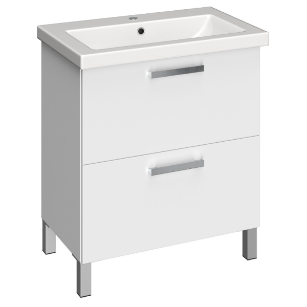 Тумба под раковину MELAR выполнена в нетеряющем актуальности белом цвете. Гладкие глянцевые фасады ящиков дополены хромированными ручками четкой геометричесокй формы. Скрытые направляющие ящиков снабжены доводчиками, что позволяет закрывать ящик мягко и бесшумно. Тумбу можно как подвешивать на стенку, так и устанавливать на ножки, что делает ее универсальным и функциональным решением для любой ванной комнаты.