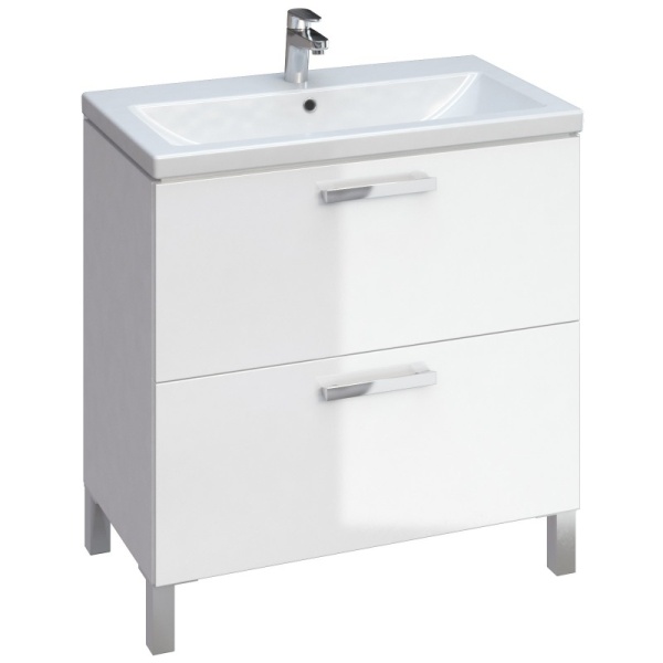 Тумба под раковину MELAR выполнена в нетеряющем актуальности белом цвете. Гладкие глянцевые фасады ящиков дополены хромированными ручками четкой геометричесокй формы. Скрытые направляющие ящиков снабжены доводчиками, что позволяет закрывать ящик мягко и бесшумно. Тумбу можно как подвешивать на стенку, так и устанавливать на ножки, что делает ее универсальным и функциональным решением для любой ванной комнаты.