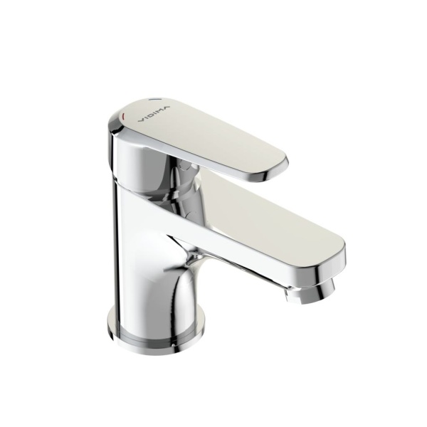 VIDIMA BALANCE Смеситель для умывальника, система монтажа EASY-FIX (облегченный монтаж), литой излив 107 мм, аэратор PERLATOR, металлическая рукоятка, индикатор холодной/горячей воды, подводка гибкая G1/2", шланги стандартной длины 400 мм