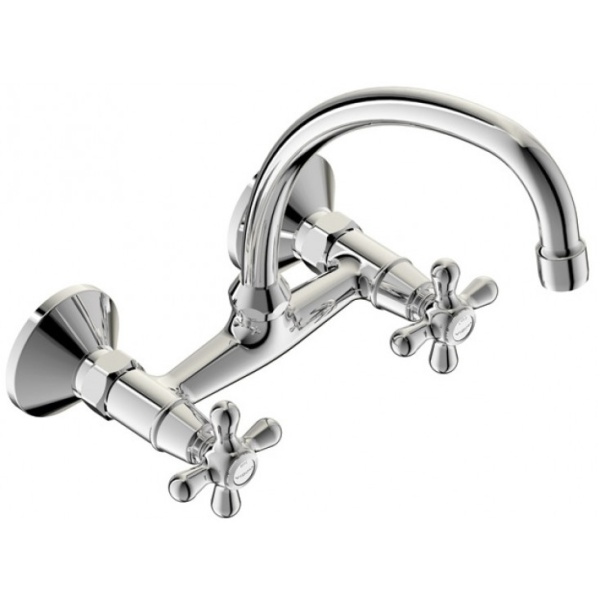 RETRO Настенный смеситель для умывальника, монтаж на стандартных эксцентриках (в комплекте: эксцентрики, металлические отражатели, уплотнительные прокладки), трубчатый поворотный излив типа  U 200 мм, угол поворота 360˚, аэратор PERLATOR, керамические кранбуксы производства Германии с поворотом 180˚, металлические рукоятки